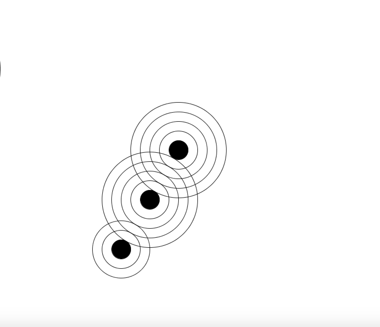 - Intersections fabric: the ring intersections are the cornerstone of the whole work. These are computed individually to be able to then represent them, skip them, etc. in any way the system may find fit (among the choices made available by the artist, that is). They can be represented by a mix of solid fill, lines or outline / schema. In the case that it uses lines, it specifies if these are thick or thin. They create very different effects on the final work.