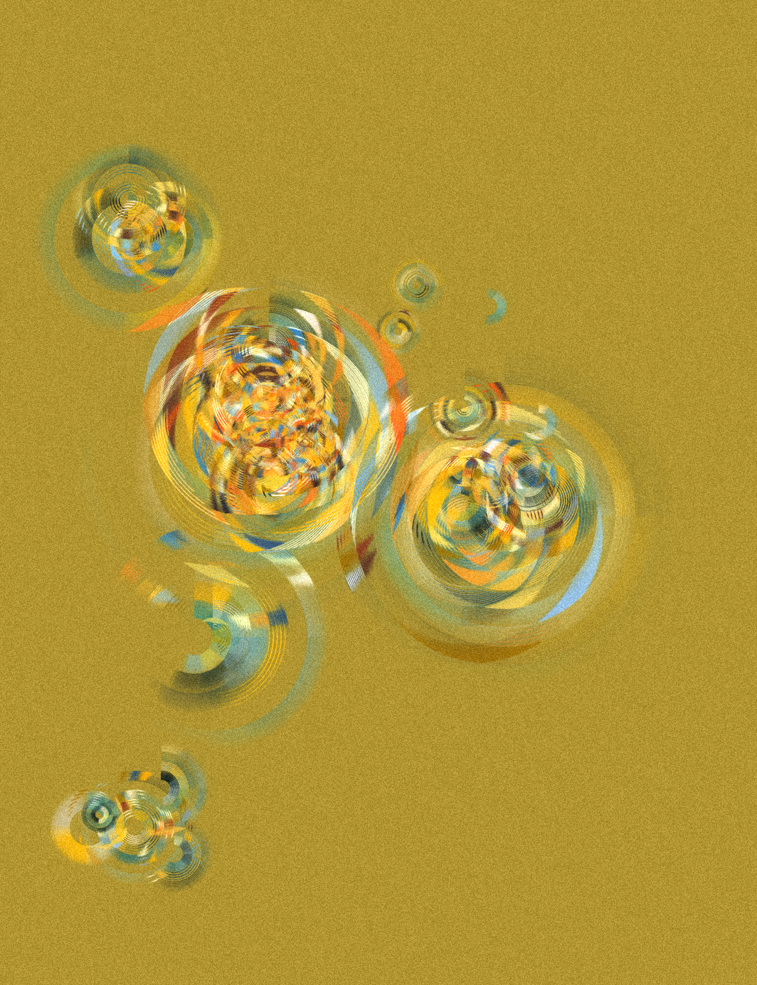 Our lives are scattered across several time scales, and the meaning of every event that takes place depends on the time scale that we choose to define & observe them from. Yet we fail to fully comprehend this in our daily errands. Entretiempos is an artwork that reflects on this, based on an aesthetic that pays a tribute to the works of Sonia Delaunay, František Kupka and other painters from their era, recreated by the usage of intersecting rings that create a varied and rich space.