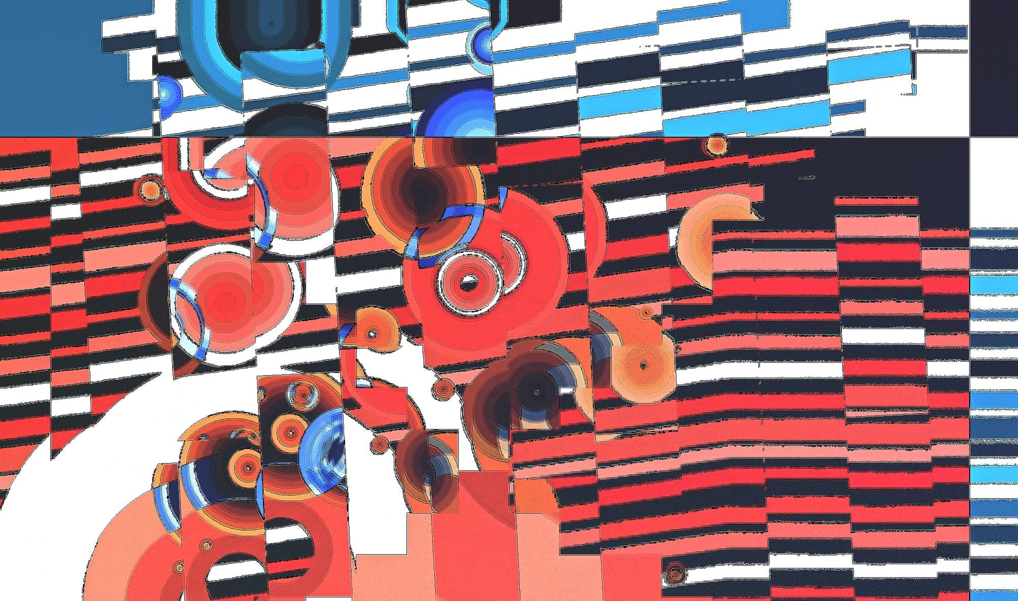 - Varying viewports: the work has different view states. There is a base image composed of the moving ring groups, which is then viewed through different lenses. A split view in 4 dynamic triangular sections, each with a different zoom, displacement and resolution values. A split view in a changing grid of rectangles that also exhibit different view values. We always perceive life in different ways, a perception altered by many factors.