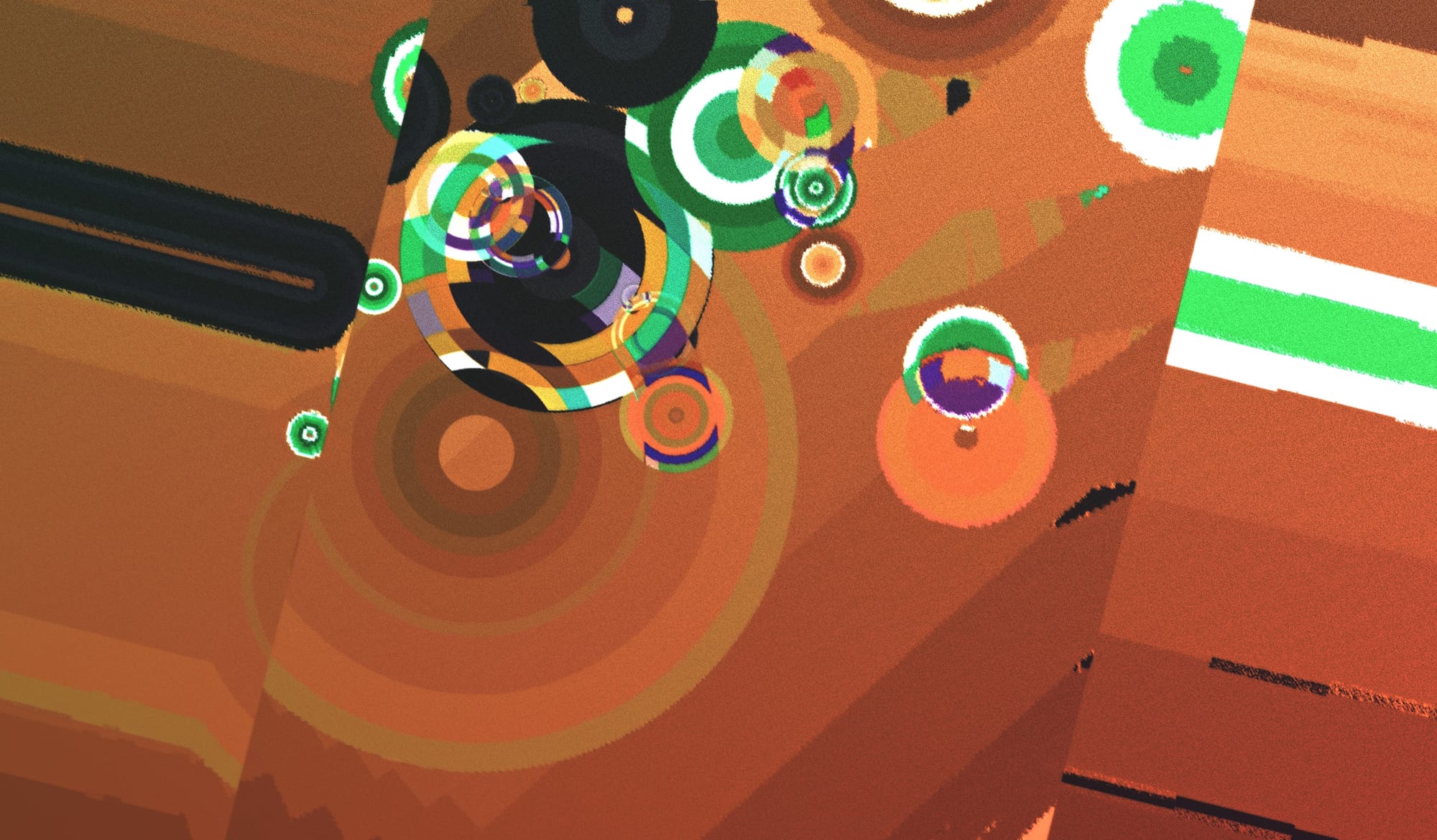- Variable zoom: the piece will forever shift zoom levels. Sometimes it will only show a closeup of the ring groups, while zooming out also to a broader view where the infinite fields that expand around our existence will show their own movement and patterns. The ripples of our existence, the echoes, or whatever it may suggest you. One can choose how to navigate their life. The work lets the experiencer zoom in/out with the a command, displace the view with the arrows (also click+drag) and, most importantly, it lets the experiencer perform the work. More on that below.